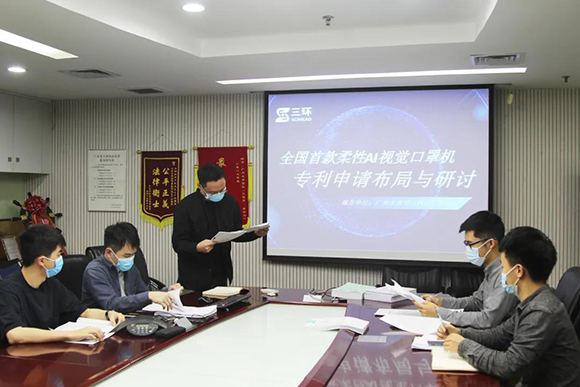 2020年初,新冠疫情來勢洶洶,不斷蔓延的疫情,讓防疫工作,成為重中之重。防疫物資成為了群眾的防火墻,醫(yī)生的生命線。疫情之初,停工停產(chǎn)之際,三環(huán)逆行而上,在做好安全防護(hù)的基礎(chǔ)上,三環(huán)專利代理師毅然前往口罩機(jī)研發(fā)生產(chǎn)企業(yè),進(jìn)行現(xiàn)場辦公,第一時間完成全國首款A(yù)I全自動口罩機(jī)的6項專利申請,有效促成口罩機(jī)的投產(chǎn),助力形成了一條日產(chǎn)超15萬片的“生命線”。作為知識產(chǎn)權(quán)工作者,團(tuán)隊雖不能像醫(yī)護(hù)人員一樣沖鋒在前,但仍能用智慧為一線醫(yī)護(hù)人員提供保障。