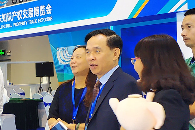 由廣東省市場(chǎng)監(jiān)督管理局(知識(shí)產(chǎn)權(quán)局)、廣州市人民政府、中國(guó)專利信息中心主辦,廣州市知識(shí)產(chǎn)權(quán)局、廣州開發(fā)區(qū)管委會(huì)承辦的“2018廣東知識(shí)產(chǎn)權(quán)交易博覽會(huì)”(下稱“知交會(huì)”)于11月7日在廣州南豐國(guó)際會(huì)展中心開幕。廣東省副省長(zhǎng)陳良賢、國(guó)家知識(shí)產(chǎn)權(quán)局副局長(zhǎng)張茂于、廣州市副市長(zhǎng)王東、廣東省市場(chǎng)監(jiān)督管理局(知識(shí)產(chǎn)權(quán)局)局長(zhǎng)麥教猛等領(lǐng)導(dǎo)出席開幕式。隨后領(lǐng)導(dǎo)一行來到三環(huán)展區(qū)進(jìn)行視察指導(dǎo),三環(huán)總經(jīng)理郝傳鑫熱情接待了各位領(lǐng)導(dǎo)并詳細(xì)介紹三環(huán)的參展情況。領(lǐng)導(dǎo)們對(duì)三環(huán)的展示效果給予了充分肯定,并激勵(lì)三環(huán)利用好知交會(huì)平臺(tái),充分展示知識(shí)產(chǎn)權(quán)金融服務(wù)成果。