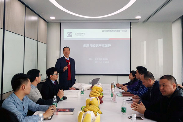 11月21日下午,株洲市科技局(知識產(chǎn)權(quán)局)段永興副局長、何應(yīng)軍科長、言琳芝科長率株洲縣經(jīng)濟(jì)科技信息化局、石峰區(qū)科技局、蘆淞區(qū)經(jīng)濟(jì)科技信息化局、中車株洲所研究院、湖南工業(yè)大學(xué)、湖南鐵路科技職業(yè)技術(shù)學(xué)院、中車株洲電機(jī)有限公司、株洲千金藥業(yè)股份有限公司、中車株洲所時(shí)代電氣等株洲知名企業(yè)高管及高校老師一行近六十人蒞臨廣州三環(huán)專利商標(biāo)代理有限公司,就知識產(chǎn)權(quán)方面事宜進(jìn)行考察交流。三環(huán)董事長溫旭教授及肖宇揚(yáng)律師等接待了株洲市科技局領(lǐng)導(dǎo)一行,并陪同其參觀了三環(huán)東塔辦公場所。