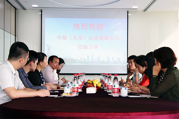 2017年10月26日,中規(guī)(北京)認(rèn)證有限公司副總經(jīng)理邵燁先生一行蒞臨三環(huán)調(diào)研指導(dǎo)貫標(biāo)工作。三環(huán)總經(jīng)理郝傳鑫先生、項(xiàng)目經(jīng)理方泉先生、貫標(biāo)經(jīng)理江韻華女士等熱情接待并陪同調(diào)研。