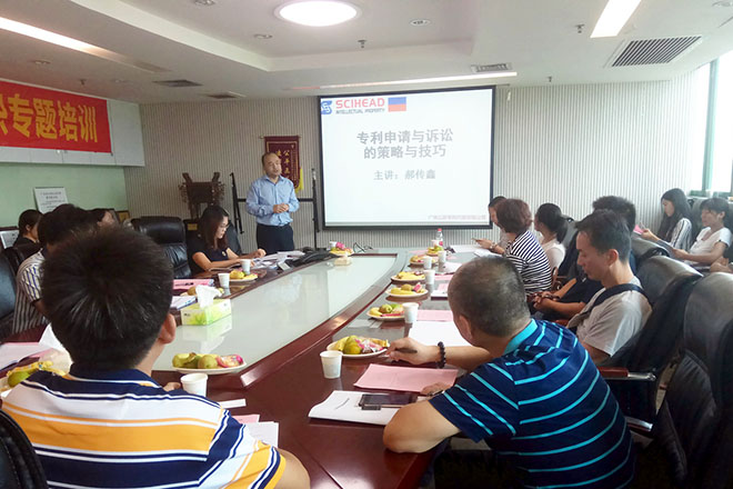 培訓(xùn)上,郝傳鑫總經(jīng)理首先作簡(jiǎn)明扼要的開場(chǎng)致辭,引導(dǎo)大家進(jìn)入學(xué)習(xí)狀態(tài),然后作關(guān)于專利申請(qǐng)與訴訟的策略及技巧內(nèi)容的演講。通過(guò)解析多個(gè)典型的專利申請(qǐng)、訴訟案例,使大家領(lǐng)悟到專利的深層含義、權(quán)利屬性及專利申請(qǐng)帶來(lái)的巨大益處。正反例之間的對(duì)比講解,啟發(fā)大家更深刻地認(rèn)識(shí)到專利申請(qǐng)與訴訟的策略、技巧的重要性。專利申請(qǐng)并不是一件隨意就可以做得好的事情,它需要運(yùn)用很多技巧,這樣申請(qǐng)到的專利才具有價(jià)值,才能成為一項(xiàng)防御強(qiáng)、難攻克的優(yōu)秀權(quán)利。